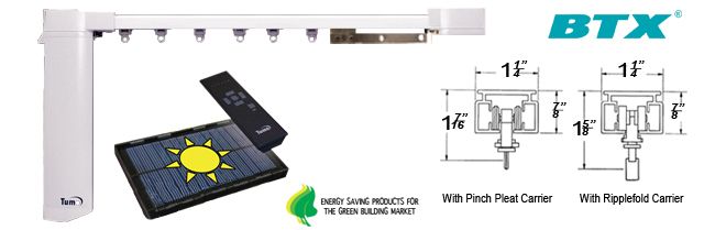Solar-powered RF Plug & Play Drapery Automation* BTX introduces a new self-sufficient, solar-powered DC automated drapery system -- the Tumo® Xcel Eco-line. It is economical, efficient, very quiet and fully plug-and-play.